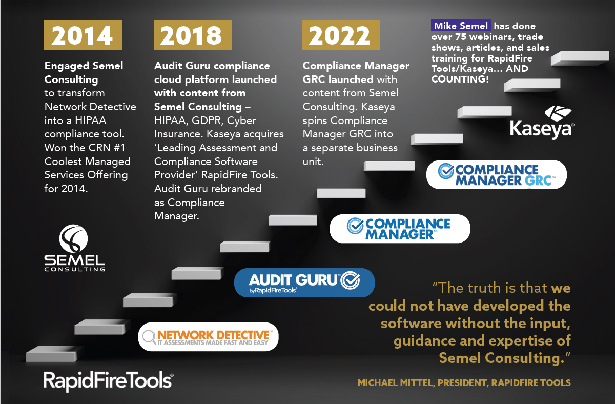 I helped RapidFire Tools change from being a cybersecurity software vendor to a compliance software vendor.